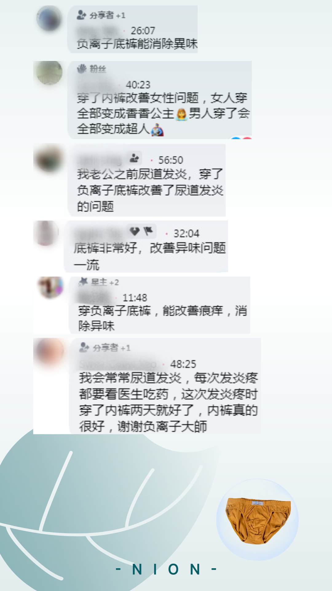 平时遇到伤风感冒,都知道去医院看看,可一到女人的妇科问题,就会变成,难言之隐,别让不好意思,毁掉你的下半身,负离子底裤(女)专为女人下半身保健而作! 负离子底裤(女)拥有: 负离子抗菌99.9%,消除炎症,除异味,除瘙痒 穿负离子底裤,保护你的下半身性福!