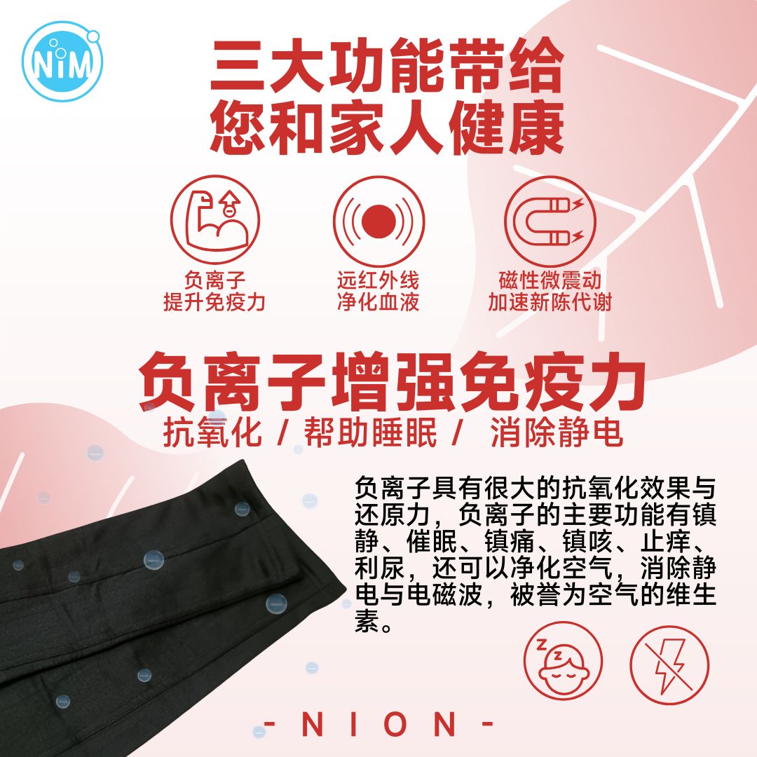 功能:负离子,远红外线,微震动,磁场,抗菌99.9