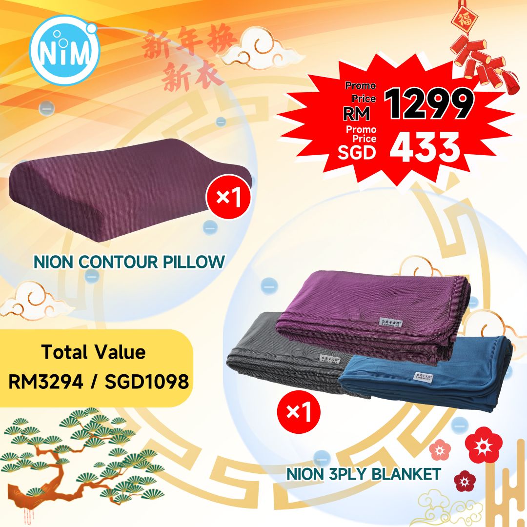 C16+1 【Negative Ion Comfortable Sleep Set】Special Offer:RM1299/SGD433 #NION Contour Pilliw*1 #NION 3Ply Blanket*1 (Total PriceRM3294/SGD1098)