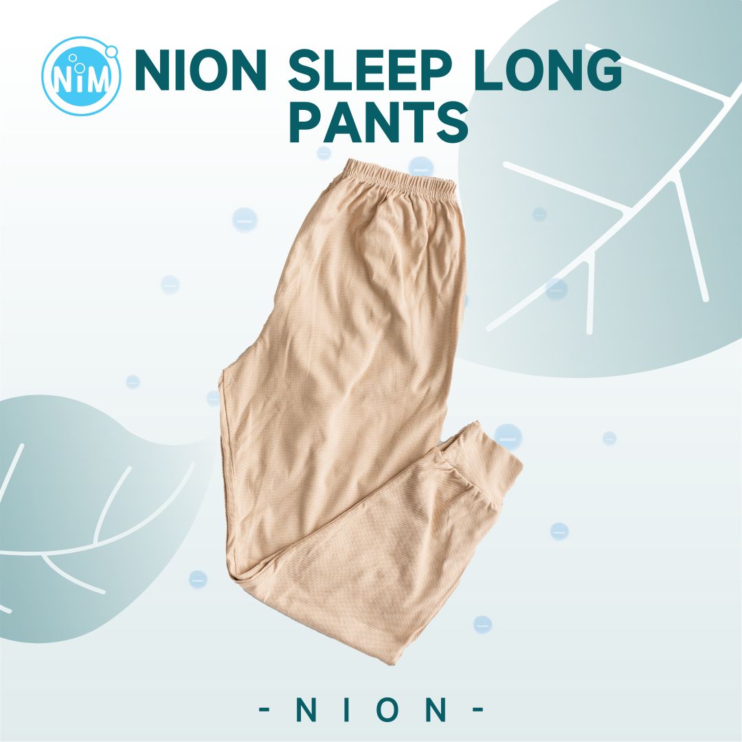 NION SLEEP LONG PANTS COLOUR: Grey, Beige, Navy Blue, Khaki, Black Function: Negative ion, far infrared, micro-vibration, magnetic fields Efficacy: Promotes blood circulation, helps with sleep, boosts immunity, soothes sore muscles, Suitable for: Insomnia, body aches How long does it take to see results: Long-term use required (effects vary from person to person) WhatsApp +60173595411 to make an appointment