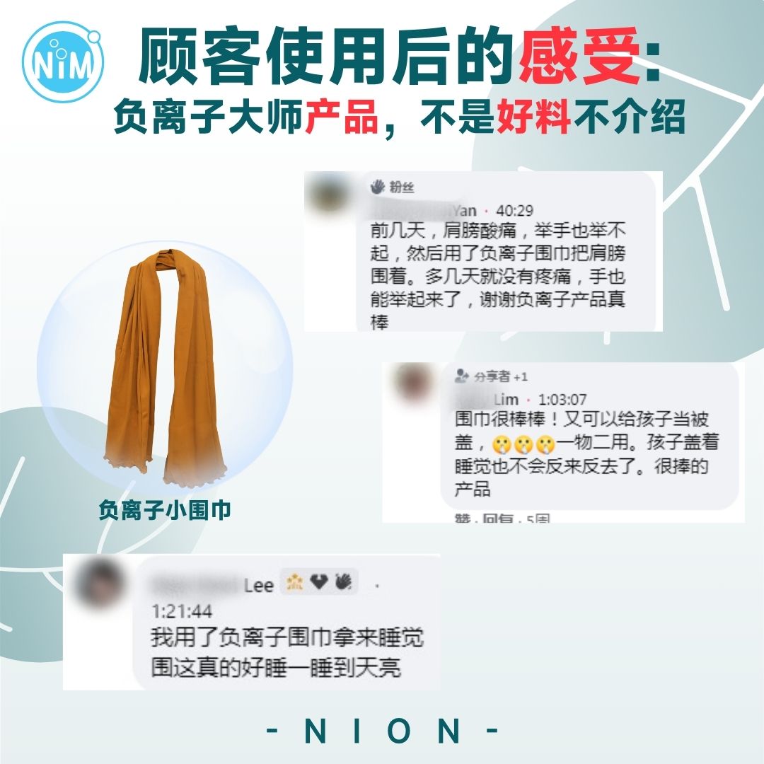 在看到负离子大师的FB直播后,我决定试试负离子小围巾,它的效果真的让我惊喜。小围巾不仅轻便,而且在缓解肩膀酸痛、头晕等问题上非常有效。它对喉咙不舒服、咳嗽也有明显的改善作用,佩戴后感觉更加舒适。除此之外,它还能帮助血液循环,让身体更加放松,我已经离不开它了。
