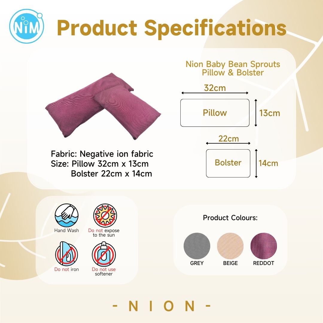 Nion Baby Bean Sprouts Pillow & Bolster Color: Grey, Beige, Red Dot Function: Negative ion, far infrared, micro-vibration Efficacy: Improves sleep quality, eliminates inflammation, rejuvenates the body, provides health protection, neutralizes positive ions, soothes sore muscles, supplements human negative ions, promotes blood circulation, aids metabolism, and fills cells with oxygen Suitable for: Newborns Time to See Results: Long-term use is recommended; effects may vary from person to person WhatsApp +60173595411 to make an appointment