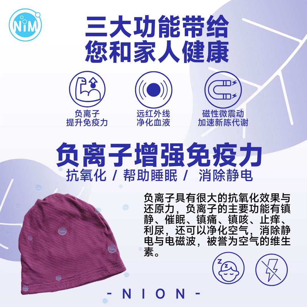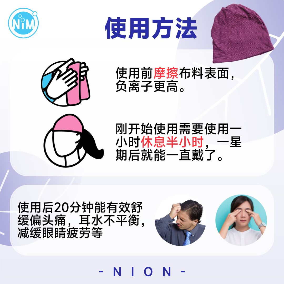 戴上负离子帽子后,头痛很快缓解了,感谢负离子大师的好产品!