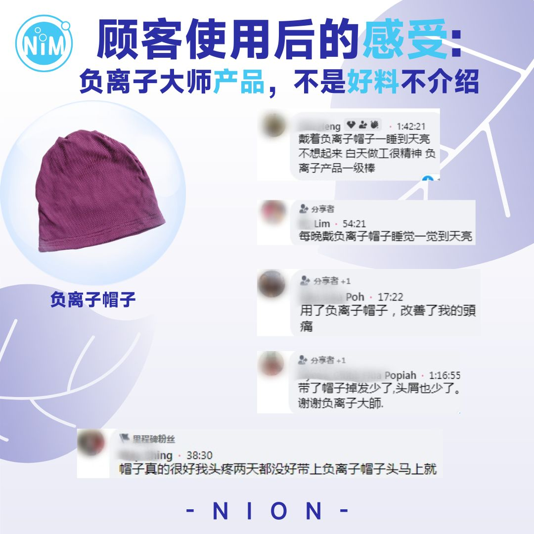我昨天头痛,想起负离子大师在fb直播间推荐过负离子帽子就赶紧戴上试试。没想到真的不痛了!感恩大师推荐的好产品,效果真心没骗我😄